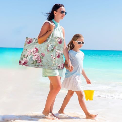 susiyo Vintage Shabby Chic Rose Beach Bags for Women Large Travel Tote Bag Waterproof Sandproof Lightweight Swim Pool Bag for Family Outdoor 1