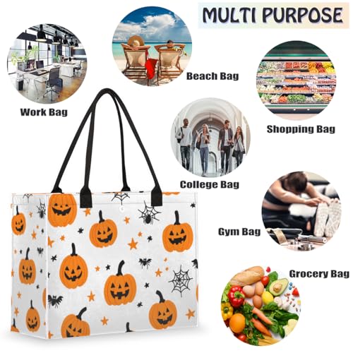 HOT ! Halloween Pumpkin Stars Tote Bag for Women Large Beach Bag Reusable Tote Bags for Work Travel Beach Shopping