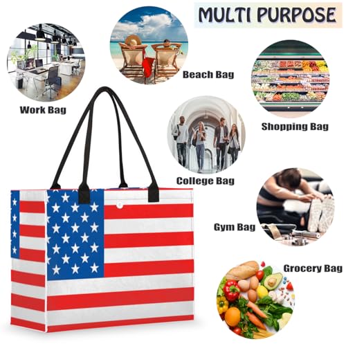 HOT ! America Flag Tote Bag for Women Large Beach Bag Reusable Tote Bags for Work Travel Beach Shopping