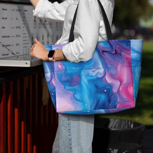 • Extra-Large Storage with 7 Compartments: Sized at 17.7 x 15 x 6.7 inches, this Abstract Blue Pink Ocean Print large tote bag includes a spacious main compartment, zippered inner pocket, two internal slip pockets, and four exterior pockets. Ideal as a tote bag with zipper for organizing beach stuff, travel gear, or work supplies