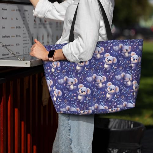 Large Beach Bags for Women Sandproof - Cute Koala Night Print Summer Travel Work Tote Bags with Zipper 1