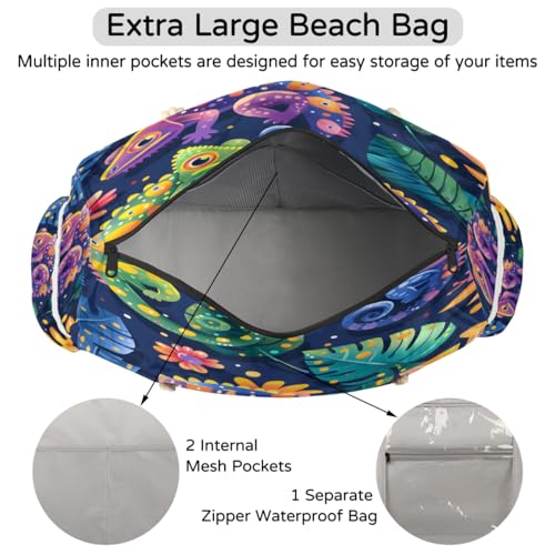 • QUALITY MATERIAL: Our beach tote bag is made of waterproof and sandproof polyester oxford fabric. Durable and tear-resistant, lightweight and easy to clean
