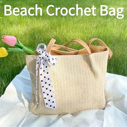 HOT ! Beach Crochet Bag for Women, Aesthetic Hobo Mesh Woven Tote Simple Modern Trendy Bags for Summer Vacation Picnic Travel