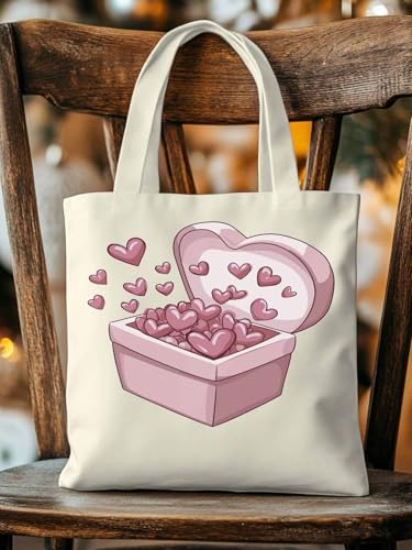HOT ! Canvas Tote Bag, Valentine's Day Aesthetic Canvas Tote Handbags for Women Shoulder Bag Pink Love Heart