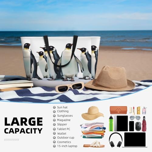 HOT ! Penguins Beach Bags For Women Large Waterproof Sandproof Beach Tote Bag Pool Bag Lightweight Zipper Carry On Bags For Gym Travel Vocation