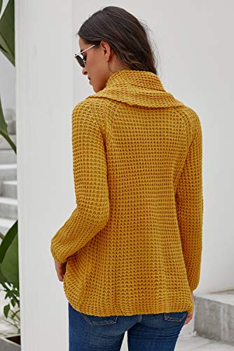 More information about Women's Button Turtle Cowl Neck Sweater Asymmetric Hem Wrap Knitted Pullover Casual Jumper Tops