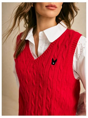Women's Embroidery Cable Knit Sweater Vest V Neck Knitted Casual Sleeveless Sweater Pullover Top 6
