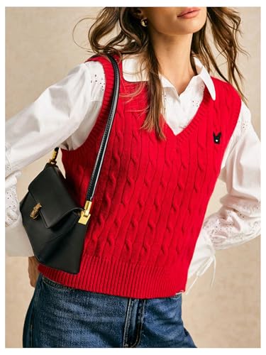 More information about Women's Embroidery Cable Knit Sweater Vest V Neck Knitted Casual Sleeveless Sweater Pullover Top