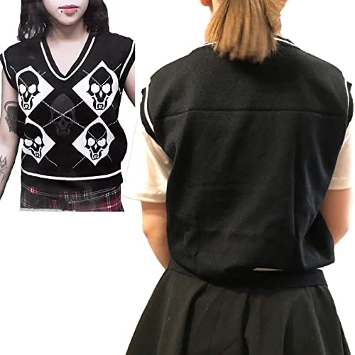 More information about Women's Sleeveless Sweater Vest Halloween Skull Printed Knit Vest V Neck Crop Pullover Knitwear Tank Tops