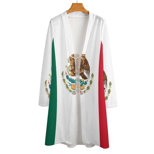 Mexican Flag Women's Medium Length Cardigan Thin Long Sleeve Cover Up Summer Open Front Tops 7