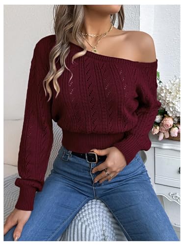 More information about SOLY HUX Sweaters for Women Off The Shoulder Long Sleeve Hollow Out Knit Pullover Sweater Tops