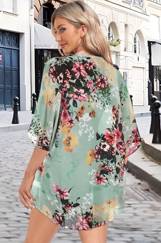 Women Kimono Cardigans Casual Summer Tops Cover up Open Front Floral Print Resort Wear 3