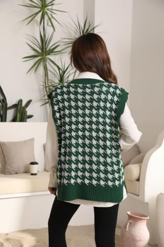 Sunfaynis Women's V Neck Houndstooth Sweater Vest Sleeveless Loose Pullover Sweater 4