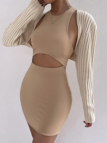 WDIRARA Women's Open Front Drop Shoulder Rib-Knit Long Sleeve Cropped Cardigan Shrug 5