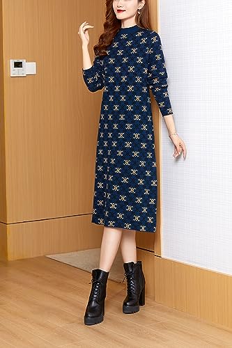 HOT ! LAI MENG FIVE CATS Women's Fall Casual Long Sleeve Knitted Stretch Pullover Sweater Elegant Midi Dress