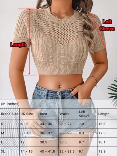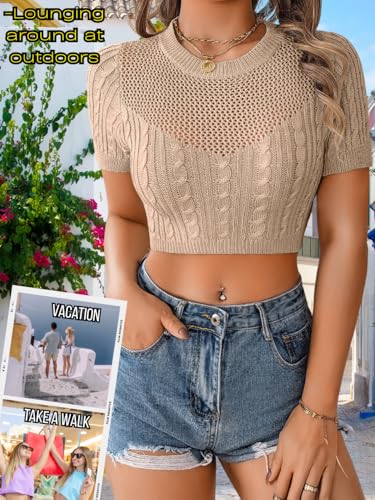 Women's Summer Cropped Knit Tops, Lightweight Hollow-Out Crop Top, Cute Crewneck Baby Tees 4