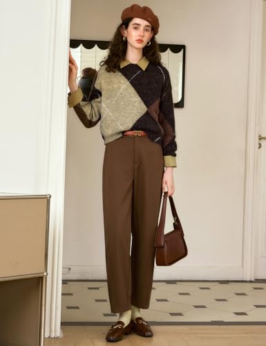 HOT ! Women's Crewneck Argyle Colour-Blocking Fuzzy Long-Sleeve Pullover Sweater Multicolor