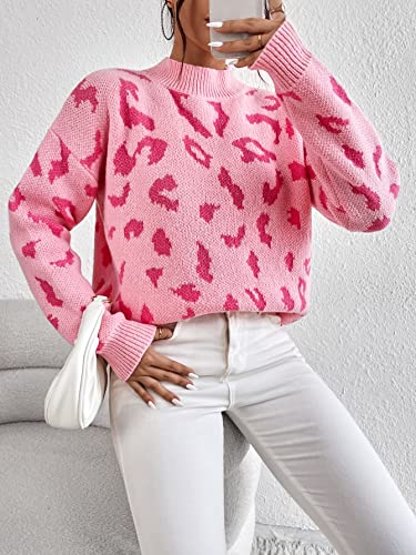MakeMeChic Women's Leopard Pattern Mock Neck Drop Shoulder Long Sleeve Sweater Pullover Top 6