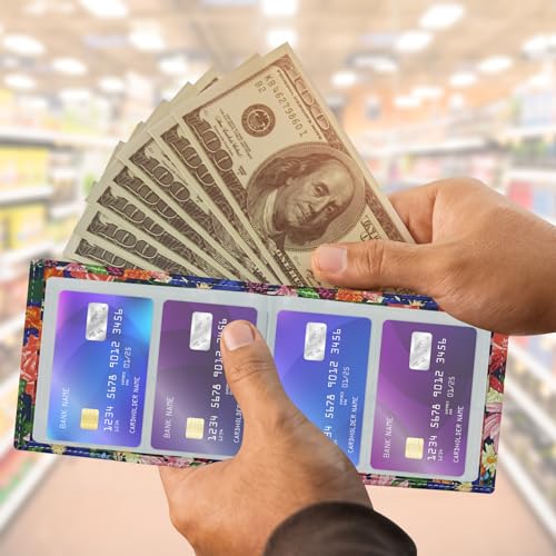 HOT ! Leather Card Holder Wallet for Women Men,RFID Bifold Wallet with 24 Card Slots and Large Cash Compartment, Multifunctional Stylish Card Holder Organizer, Small Compact Photo Album-Flower Garden