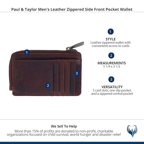 Men's Leather Zippered Side Front Pocket Wallet by Paul & Taylor 1