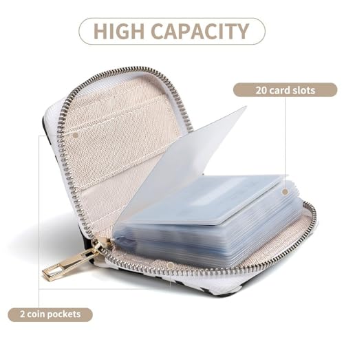 • Large Capacity: The card holder measures 4.5 x 6.3 inch. Slim pocket design perfect to fit in your pocket and wallet. It designed with 20 card slots that can hold your credit card, ID card, name cards, etc. 2 coin pocket for storing folded cash and money