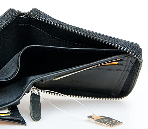 • Black unisex RFID genuine leather wallet made of sturdy genuine cowhide
