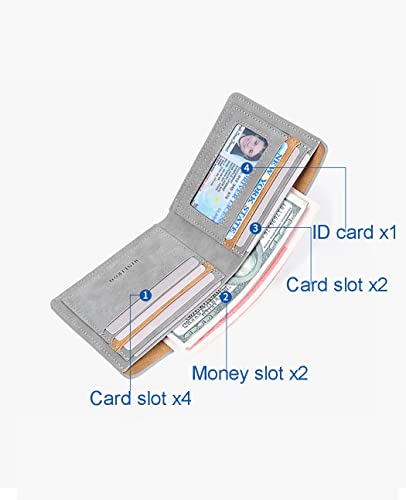 • MULTI-CARD SLOT DESIGN: The men's bi-fold wallet is designed with card slots*6, main banknote slots*2, and transparent ID slots*1. It is thin, simple, and large-capacity, and can be placed in reasonable partitions: banknotes, ID cards, and credit cards. Bank card, bus card, easy to carry and use.