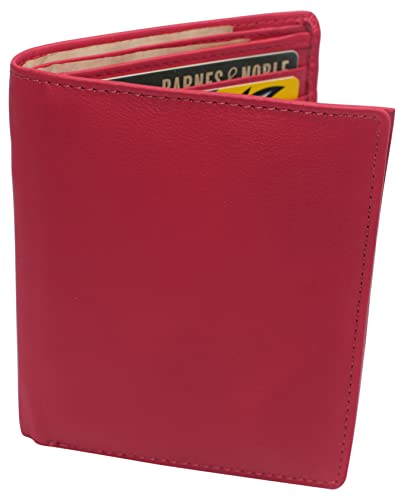 HOT ! MARSHAL Bifold Genuine Leather RFID Blocking Wallet For Men Card Slots, 2 Bill Compartments, ID Windows, Money, (CN Pink)