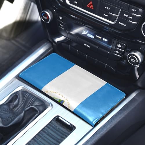 GuoChe Premium Leather Car Registration and Insurance Card Holder Men Women Essential Wallet Case for Cards, Essential Document, Driver License Vehicle Paperwork Nicaragua Flag 7
