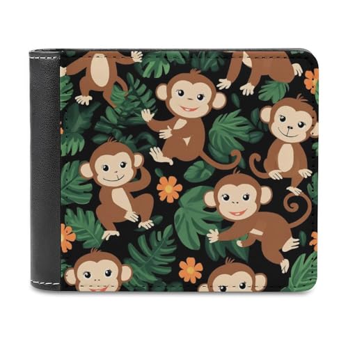 HOT ! Travel Slim Bifold Wallet for Men, Compact Thin Credit Card Holder Organizer Green Leaves Cute Funny Monkey Pu Leather Purse Bags for Office Shopping