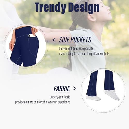 AENLLEY Girls Stretchy Flare Yoga Pants with Pockets - High Waisted Wide Leg Activewear Leggings for Kids 3