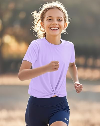 KEREDA Girls Athletic Shirts Tie Front Tops Summer Short Sleeve Quick Dry Active Tees T-Shirts for Kids Teens 5