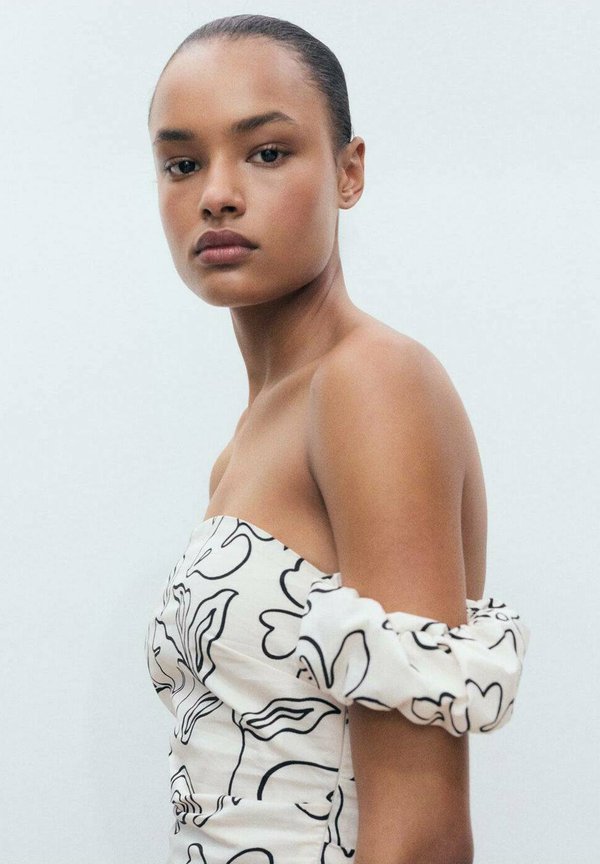 KVĚTINOVÝ VZOR S VÝSTŘIHEM BEZ RAMENÍ - Day dress - šedobílá 5