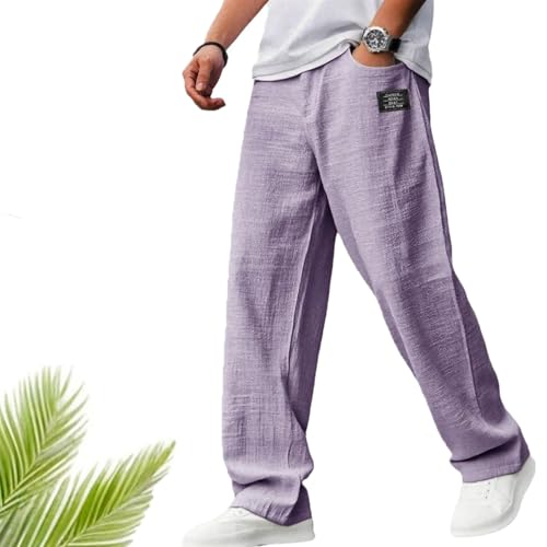 Mokaloha Mens Pants, 2025 New Men's Casual Hemp Fabric Drawstring Loose Elastic Waist Loose Pocket Trousers 5