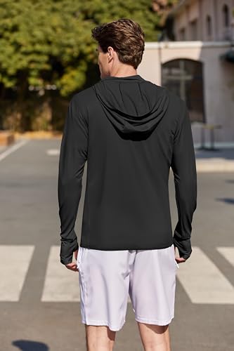 • HOODIE & THUMB HOLES & FULL ZIP:This men's lightweight jacket features a hoodie design to protect your head from the sun, and thumb holes at the cuffs to allow your hands to move freely while maintaining sun protection.The full zip design allows full coverage to the neck. HOODIE & THUMB HOLES & FULL ZIP can give your skin full sun protection.