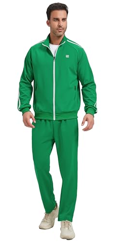 • Material Feature: Lightweight, comfortable mens track suits made with 95% polyester, 5% spandex, moisture wicking, no fading, and no ball.