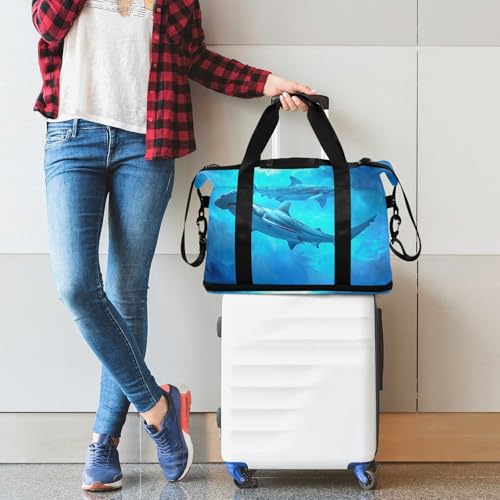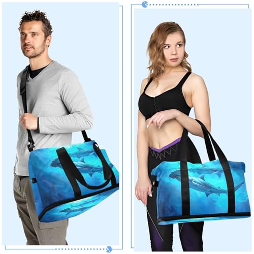 HOT ! ALAZA Sharks Underwater Travel Duffel Bag for Women Men Sports Gym Bag with Shoe Compartment Tote Weekender Overnight Bag with Wet Pocket for Travel, Gym,Yoga,Swimming