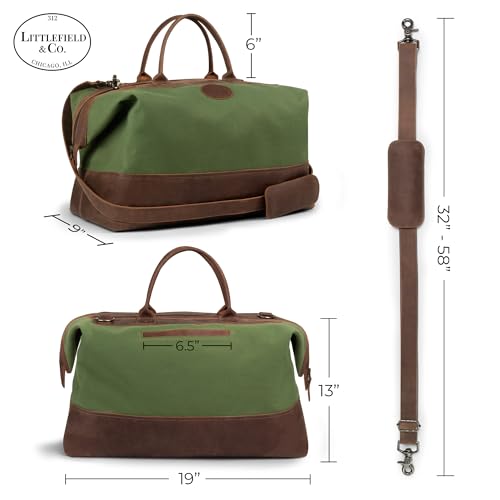 HOT ! Littlefield & Co., Duffle Weekender Bag, Vintage Carry-On Bag with Detachable Shoulder Strap, Travel Accessory (Olive)