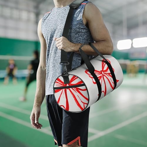 Simple Pure Red Line Bow Ribbon Travel Gym Bag for Women Men Cylindrical Duffle Bag Sport Workout Bag with Shoulder Strap 7