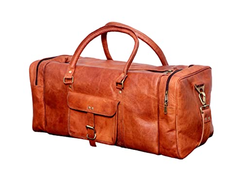 HOT ! SKADO 24 Inch Leather Duffel Bags For Men & Women Holdall Leather Duffle Travel Overnight Bag Gym Sports Brown Weekender Bag, Roll On Laptop Backpack Rucksack Knapsack Office College Bag