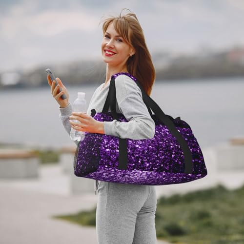 HOT ! Beautiful Purple Glitter Print Everyday Use Travel Duffle Bag Large Capacity Travel Bag Stylish Functional Bag