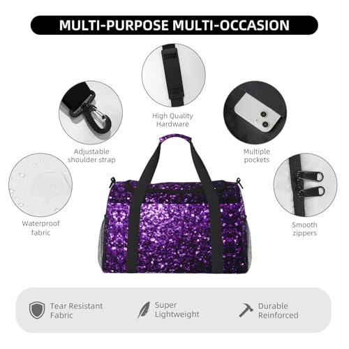 Beautiful Purple Glitter Print Everyday Use Travel Duffle Bag Large Capacity Travel Bag Stylish Functional Bag 6