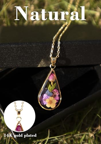 • Material: High-quality pure copper plated with 14K real gold,The teardrop pendant necklace is made of uniquely preserved real dried flowers. It is unique to you