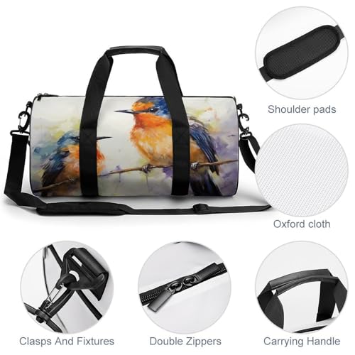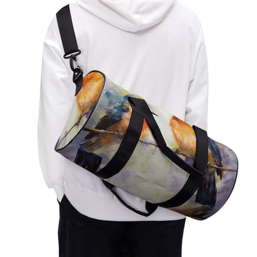 HOT ! Duffel Bag for Men Women Gym Bag Oil Painting Bird Travel Duffel Bag Waterproof Overnight Bag for Sports Workout