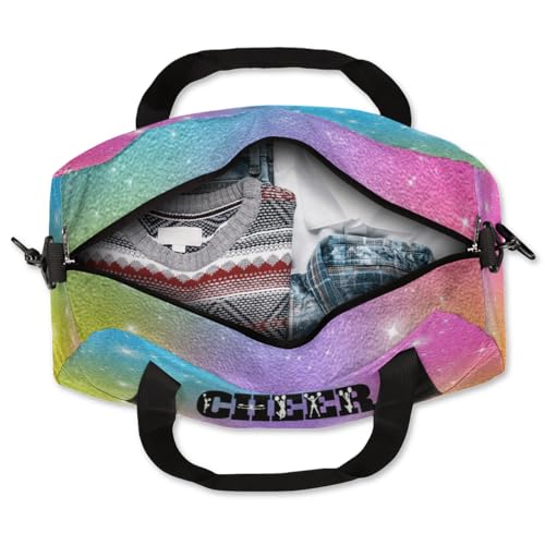 Personalized Custom Girls Dance Bag, Custom Name Sports Gym Bag Kids Duffel Bags Customized Travel Duffel Bag Overnight Weekender Sleepover Tote Bag for Girls, Colorful Glitter Cheer 7