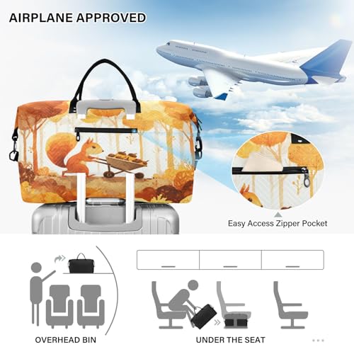 Weekender Bags Travel Duffel Gym Bag Squirrel Cart Golden Maple Forest Carry on Overnight Tote Bag with Toiletry Bag for Airplane Travel Trip Gym Yoga 6