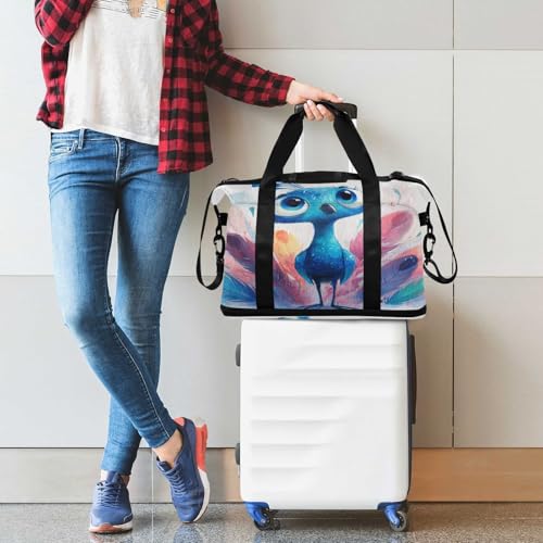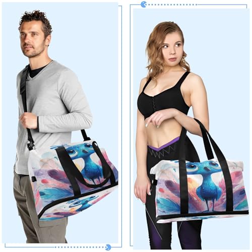 Blue Peacock Feathers Duffel Bag for Women Men Gym Bag with Shoe Compartment Wet Pocket Carry On Weekender Overnight Bags for Travel Gym Yoga School 6