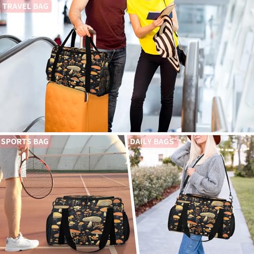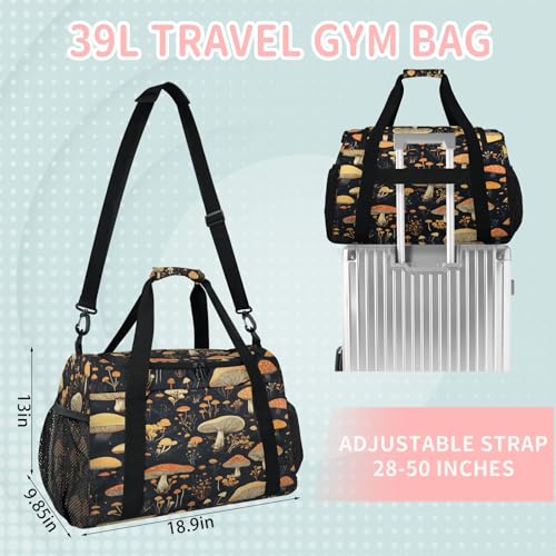 HOT ! Retro Mushroom Travel Duffle Bag - Waterproof weekend luggage bag, men's sports and fitness bag, delivery hospital storage bag, overnight luggage bag with pull rod cover