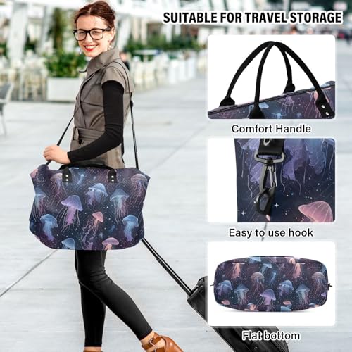 Beautiful Jellyfish Blue Large Travel Duffle Bag Weekender Overnight Bags Gym Yoga Bag for Women Men with Toiletry Bag 7