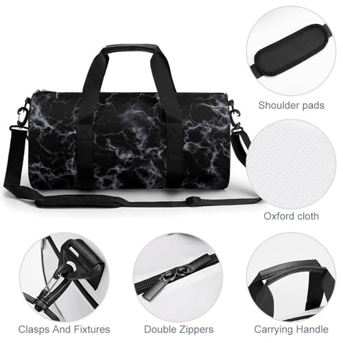 Black Marble Texture Travel Gym Bag for Women Men Cylindrical Duffle Bag Sport Workout Bag with Shoulder Strap 3